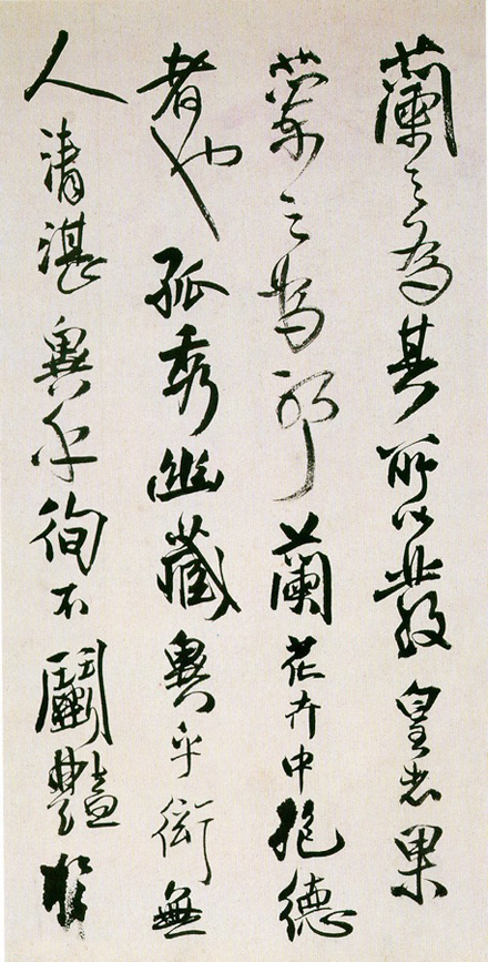 王鐸,似乎總是飽墨欲滴,一經著紙,便勢如飄風地書寫開來,最終的筆墨呈現純屬自然而然,使得黑白之間又分出許許多多不同層次的色階。有濃方顯淡,有枯方顯潤,從頭至尾呈現出一種連綿之勢,若大江之水順勢湧開,奔軼絕塵。