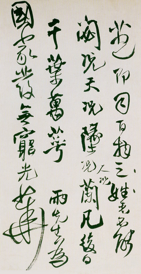 王鐸對草書的突破還表現在其獨特的空間處理上。他的空間意識很強烈。我們甚至可以說,王鐸的草書作品呈現給我們的是一個動感的豐富多元的空間模式。在這動感的背後又蘊涵豐富的內涵——這就是美,這就是王鐸草書的魅力所在。相信,這也是很多思友喜歡王鐸的原因。