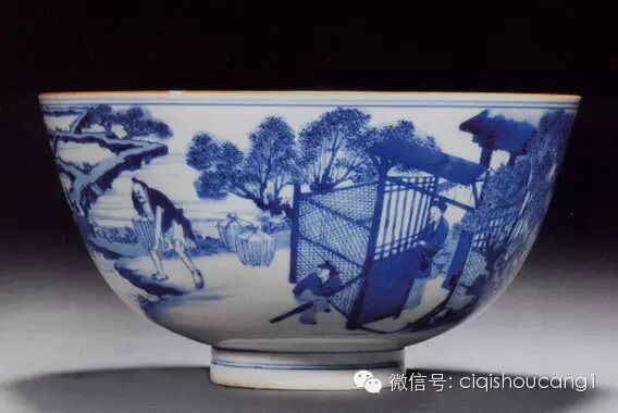 25 、 康熙青花在繪畫技法上,也有不少改革和創新,形成了自己獨特的風格。改變了明代青花勾勒花紋輪廓線,然後塗色的傳統方法,即單線平塗,而是采用瀉染即“分 水皴”的技法和借鑒了西洋畫的焦點透視手法,濃重、淡雅層分分明。在瓷坯上繪畫,一種顏色即能表現出濃淡、深淺多種不同的色調。所謂“分水皴”就是用筆梢 蘸濃淡不同的料水在胎上描繪,技術上要求高,少的三五種,最多能分了八九種色階。山石的描畫,多采用斧劈南宋畫院派的風格。運筆時勾、染、皴、擦、點各種 繪畫手法並用,這全靠畫工手筆功夫來完成,構圖講究多樣化,強調畫麵活潑有趣味,視野開闊,無論畫麵大小,都有一種很完美的情境。可以說,康熙青花將中國 繪畫的技法,經以圖案的構成形式,巧妙而生動地繪製在瓷器上,使我國瓷器裝飾得到了進一步的提升。有的畫麵結合刻、劃及鏤空堆貼等工藝。同時還廣泛借鑒其 它姐妹藝術的有益經驗來豐富自身的裝飾,尤其是青銅器、漆器和織繡等。