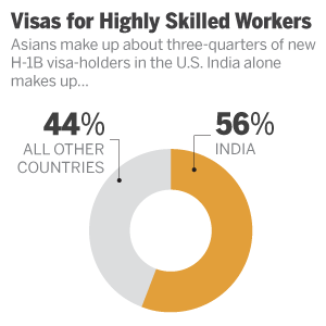 4)亞洲人拿走了75% 的H1B工作簽證,其中印度人占了多一半。