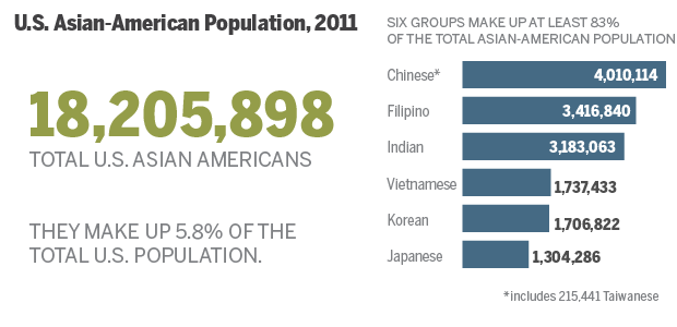美國皮尤研究中心最近發布了一組數據,從人口,教育,收入,黨派傾向,家庭觀念,婚姻傾向,幸福感等方麵,對亞裔,華裔和美國總體人口的狀況做了對比。目前在美國的三億人口中,1800萬是亞裔,其中400萬是華人。