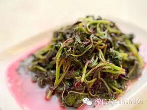 “在上海我跟我母親住的一個時期,每天到對街舅舅家去吃飯,帶一碗菜去,莧菜上市的季節,我總是捧一碗烏油油紫紅夾墨綠絲的莧菜,裏麵一顆顆肥白的蒜瓣染成淺粉紅。在天光下過街,像捧著一盆常見的不知名的西洋盆栽,小粉紅花,斑斑點點暗紅苔綠相同的鋸齒邊大尖葉子,朱翠離披,不過這花不香,沒有熱呼呼的莧菜香。”——張愛玲