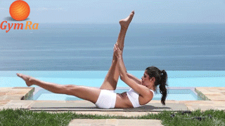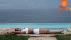 腿部、腰腹部以及後背著力瑜伽墊,雙腿、雙腳靠著力點做放射蹬腿的動作,40個為一組。