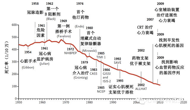 冠心病早期治療沒有別的方法隻有藥物治療,藥物治療並不能去除血管的狹窄,效果並不理想。直到1969年,Favaloro完成了首例開胸外科搭橋手術,開創了冠心病外科手術治療的先河。但是早期外科手術治療需要心髒停跳,創傷大,圍術期死亡風險較高,有一定局限性。世界心髒病專家們一直在探尋治療冠心病的新方法。德國醫生Grüentzig是一位具有非凡創新精神與頑強毅力的臨床醫生,早在1974~1977年 就用球囊擴張下肢動脈的方法治療下肢缺血,他靈光一閃:球囊擴張是不是也可以擴張冠狀動脈治療冠心病?他製作了擴張冠狀動脈的專用球囊,也要說服他的導師 和其他專家。遺憾的是他並沒獲得所期待的支持,被批評為癡心妄想。在美國心髒學會年會公布的動物實驗結果也受到冷嘲熱諷,不少人認為他瘋了,但Grüentzig頂住了壓力執著於他的理想,對於批評和嘲弄一笑置之。1977年,他選擇了一例左前降支近端狹窄的冠心病患者,實施世界首例經皮冠狀動脈球囊擴張(PTCA)(Lancet.1978;1:263-264)。他用冠狀動脈專用球囊導管在左前降支狹窄部位擴張了2次,狹窄明顯改善,病人反應良好。手術成功了!此後不久,Grüentzig成功完成了第2例,邀請全世界心髒病專家觀摩手術,推動了介入治療的普及和發展,開啟冠心病治療的新時代。