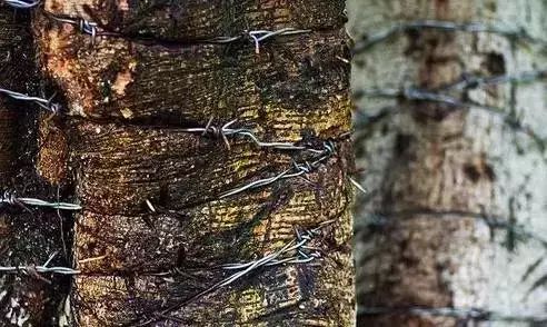有一年,當地發生了一種奇怪的植物真菌疫病,方圓幾十公裏的榆樹全部死亡,唯獨那顆箍了鐵圈的榆樹卻存活下來。