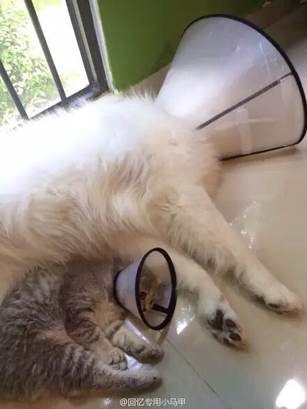 蠢狗最近總舔自己的臭腳丫,說不聽,怕它感染病菌隻好給它戴上了恥辱罩。罩子扣頭上後妞妞著急又不會弄掉,跑去找端午。剛開始端午花幾分鍾才能給它撓開,後來手熟了哢哢兩爪子就能幫它弄掉……沒辦法……隻好給端午也戴上了……現在它倆老實了……朋友一生一起走……