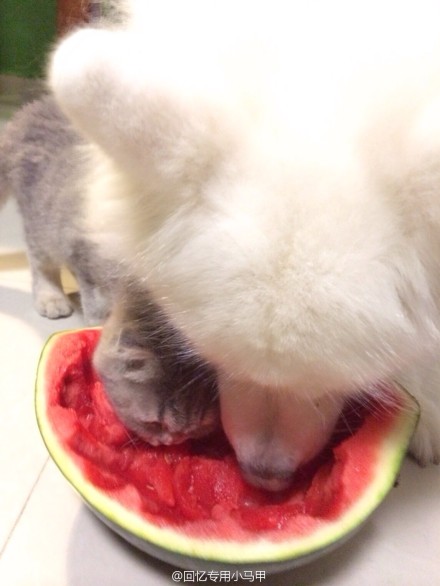 壞境太重要了!端午開始對西瓜不屑一顧,現在已經扭扭捏捏跟著妞妞混點西瓜汁喝……我大膽預測,離端午啃瓜皮的那天不遠了……