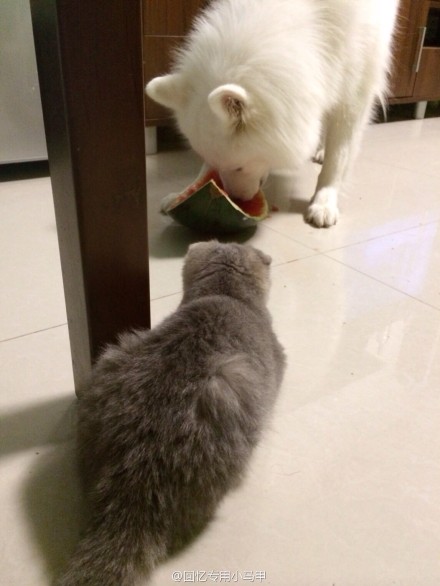任何時候!隻要我在廚房有動靜!端午嗖的一下就竄過來!然後喵喵兩聲把狗喊到!它倆就這麽眼巴巴瞅著……我從沒有安安靜靜的吃過任何東西……從沒有……