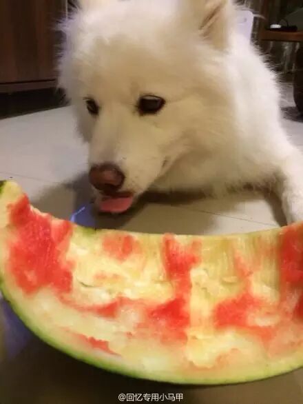 妞妞吭哧吭哧啃飽了西瓜跑去吹空調了,端午仔仔細細把瓜皮裏的果汁喝完,試探性的啃了兩口瓜皮,未遂,沒吃著,嘴太短,結構不合適。臥瓜皮旁邊不走了,我問它你在幹嘛?它說:等我狗。