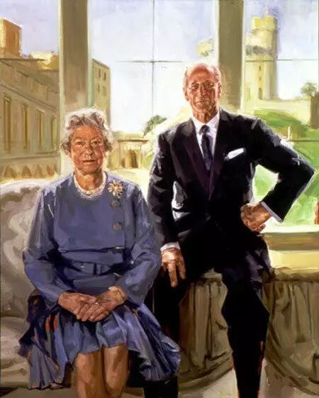 A portrait of the Queen and Duke of Edinburgh was unveiled in 1997 to celebrate their 50 years of marriage, with a style of painting which was described as "starkly arresting" and "gritty".