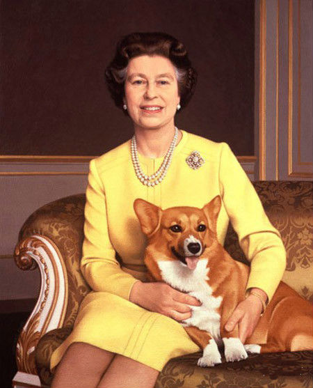Michael Leonard's seated Queen with corgi was painted in 1985-1986