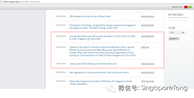然後再看第一版的十條政府公告,居然有三條是和裕廊湖區的發展有關的。限於篇幅,就不翻譯這些政府公告了,有興趣的朋友可以自己去政府的網站看一下。