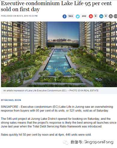 如此給力的發展機會,當然會讓人動心。不久前,執行共管公寓Lake Life 一天之內銷售了95%。自從新加坡的政府調控措施以後,很久沒有看到這樣的盛況了。Lake Life 並不靠近地鐵。但即使是這樣,裕廊湖本身的吸引力已經十分強大,所以一搶而空。