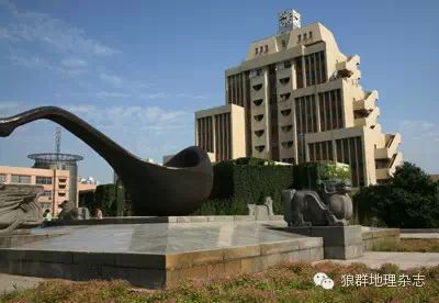 四大發明廣場司南雕塑和錢學森圖書館融為一體。