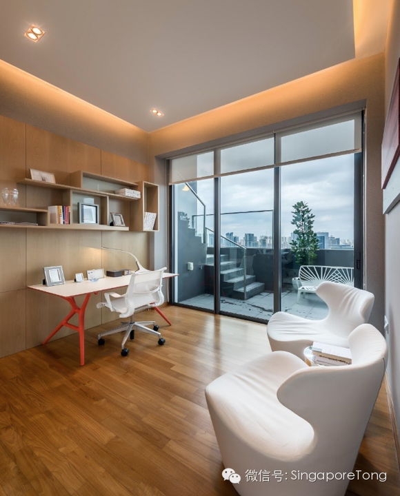 除了天台,公寓本身也是很不錯的。和一般的想法頂樓會很熱的想法不一樣,其實是很涼爽的,一個是因為風大,二個是因為新加坡公寓樓頂的隔熱層不是一般的厚,看過建造中的房子的朋友都知道。