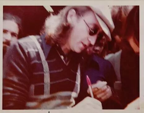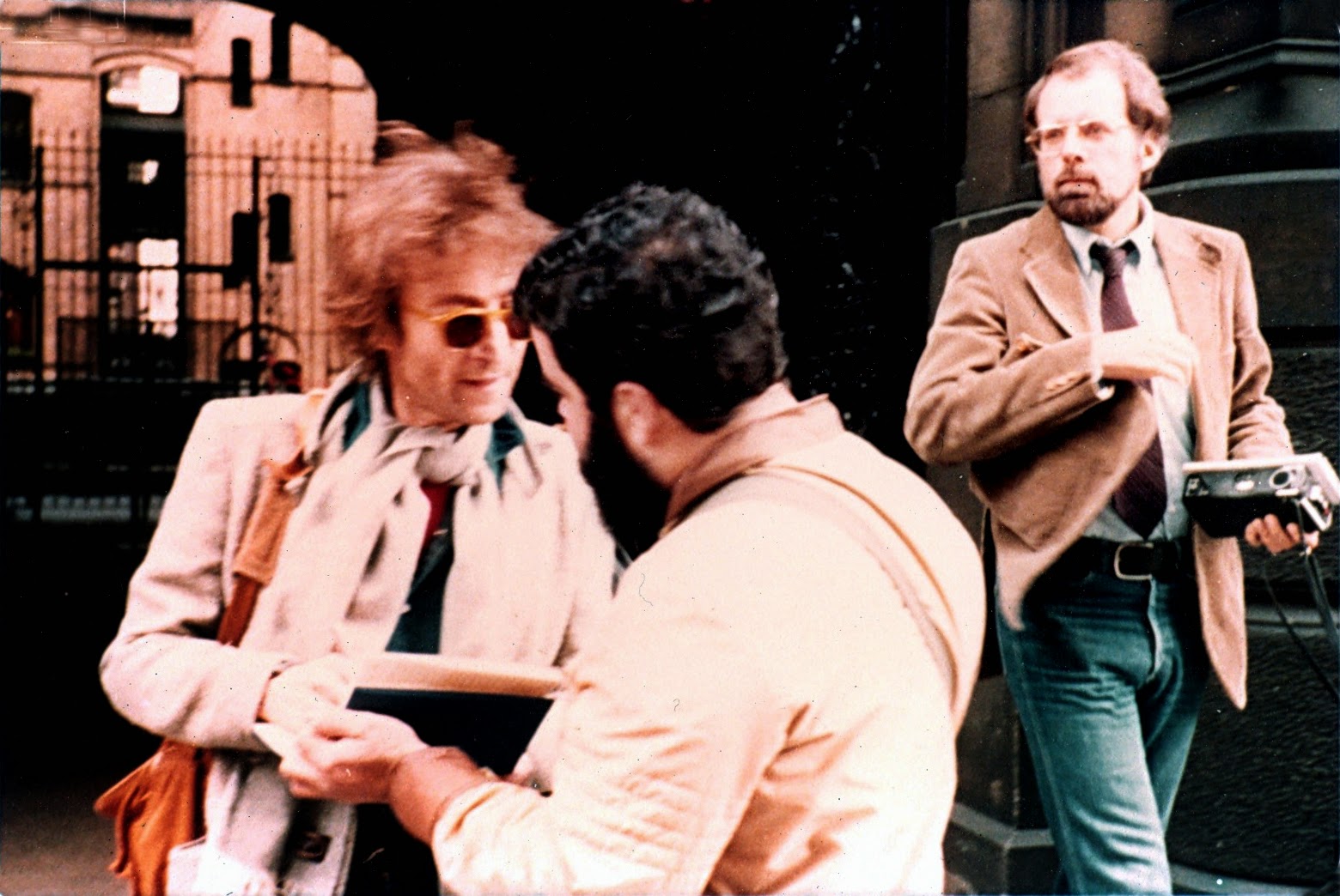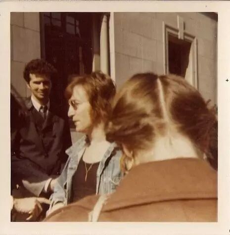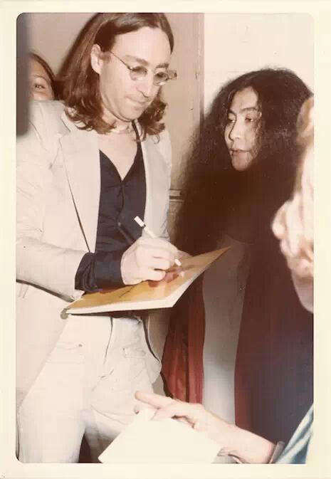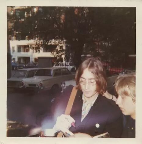 1968年,列儂在Abbey Road錄音室外為歌迷簽名