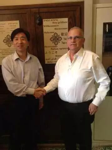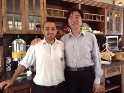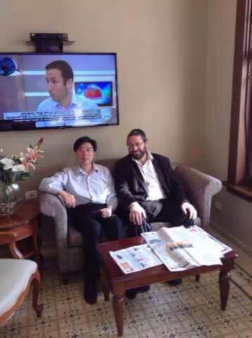 在我離開這家賓館的時候,我提出和辛·大衛合影,不是在大廳,而是在他工作的前台。他欣然答應。前台上,擺放著許多照片,都是他們全家的合影,我們合影的身後有一張海報,上麵有各種文字;其中;有“歡迎”二字。