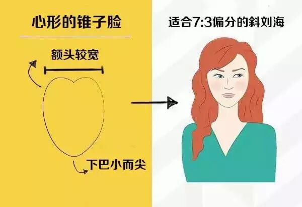 錐子型臉的姑娘,由於上寬下窄太過明顯,所以一定要從耳朵處才開始打造大卷,用卷發來調和過於削尖的下巴。