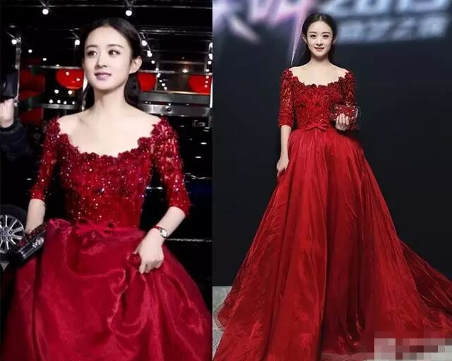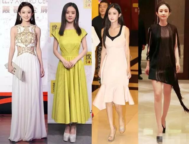 隨著電視劇《花千骨》熱映,趙麗穎逐漸榮升成新話題女王,每個穿著也成為津津樂道之話題,而她的裙裝禮服,多以褶皺設計和魚尾造型為主;不管是U領款型還是船領造型,都略顯俏皮和優雅,卻不追於暴露性感美。