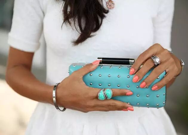 潛水藍讓人瞬間聯想到大海,由於它非常顯色,所以通常都用在配件商,像耳環、項鏈、絲巾或是指甲油。如果你身上的潛水藍單品麵積比較大,記得其他部分的顏色要簡單一點,千萬不要再配大紅色或亮橘色,那太花哨了。