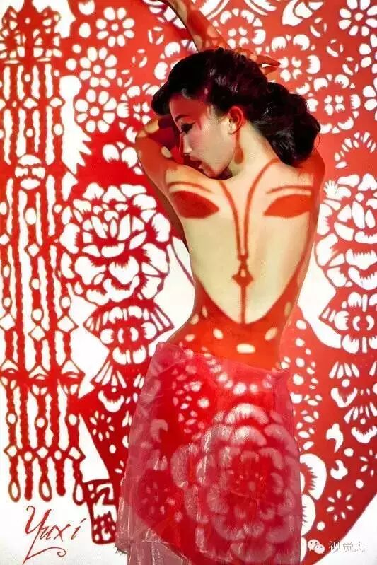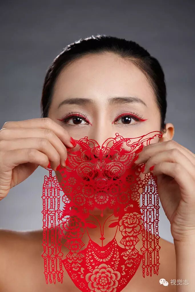 一抹紅唇,配這剪紙,體現的卻是東方女人獨有的性感。