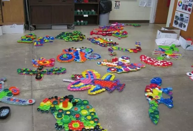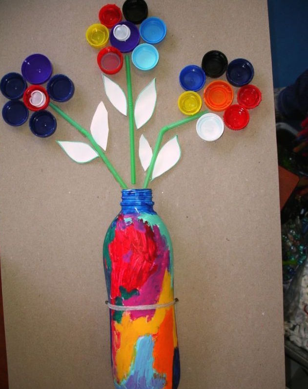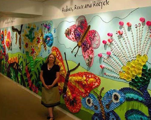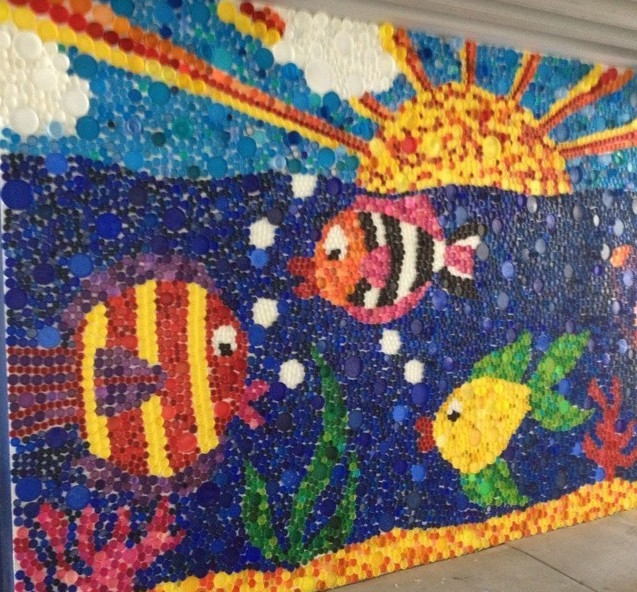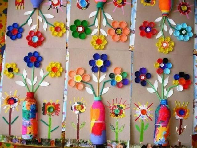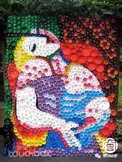 這真的是藝術品哦!廢舊飲料瓶,加上廢舊小瓶蓋,美麗的配色,手都癢癢了吧,哈哈