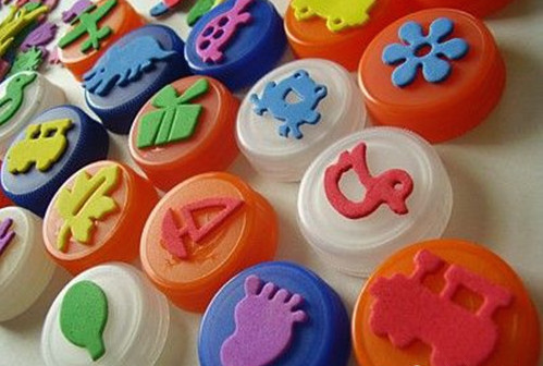 各種花色的海綿紙貼在瓶蓋上,就變成好玩的印章了!按出各種花型吧!