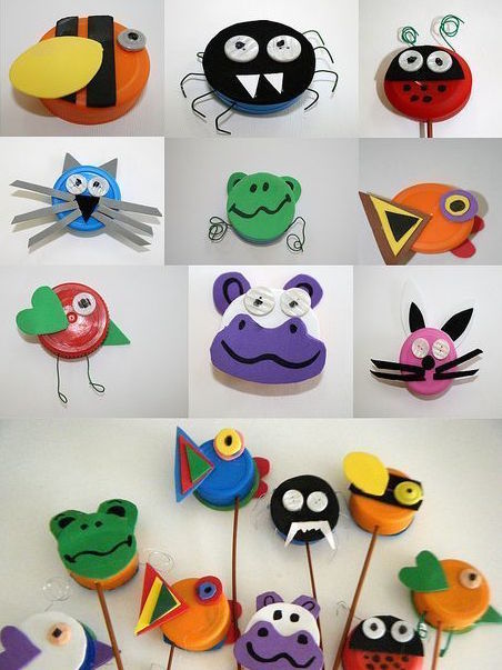 這真是超有趣的創意,小瓶蓋變身各種小動物,小魚,小昆蟲,小貓,小鳥.....各種可愛有木有!做之前先讓娃想想,一個圓圓的瓶蓋能變成什麽小動物,再動手做起來!隻需要一些海綿紙、活動眼睛、加上孩子的的創意就夠了!