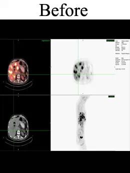 在完成既定的治療周期後,史密斯接受了PET-CT的掃描複查,結果讓所有人都驚呆了,肝髒30多處的轉移灶已經完全看不到,而胰腺腫瘤也萎縮了將近75%。