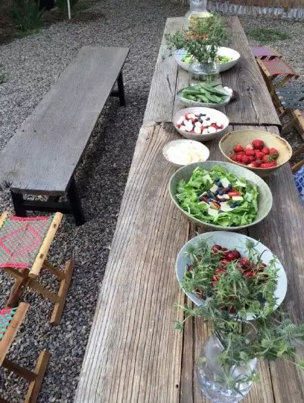 每逢周末就會有朋友驅車來拜訪,院子裏的桌子,一拚就可以待客。