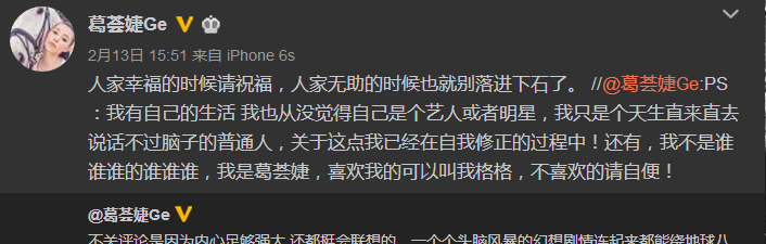 翻看葛薈婕的微博,就發現,各種語焉不詳的,冷嘲熱諷的,都是前任汪的痕跡。甚至宣傳自己的作品都不放過。