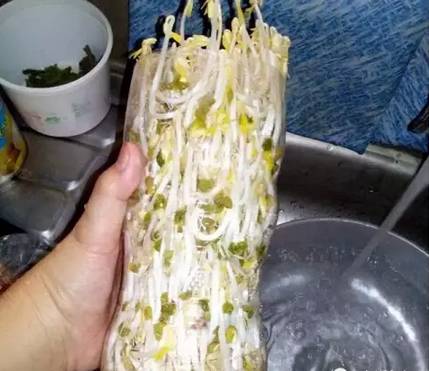 現在總說買的豆芽裏有肥料,不敢吃。這種自己發的豆芽最是清香安心,還有生活趣味。