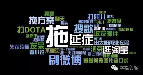 拖延症的危害,經曆過的人都知道。例如,根據美國的一款網上報稅軟件H&R Block統計,2002年報稅的時候,由於拖延症而在最後一刻倉促報稅的人們忙中出錯,總共繳納了4.73億美元的額外費用,平均每人400美元。拖延症爆發時,沒動力做事情,是不是的找點而別的事情分散注意力,拖呀拖,一直拖到截止日期前夕,開始突擊,熬夜,倉促趕工。質量就不要提了,能在最後一刻做完就萬幸了,實在做不完還得申請延期,無法延期怎麽辦?那就隻能自吞苦果,後悔不已了,心裏埋怨著自己怎麽不早點開始。
