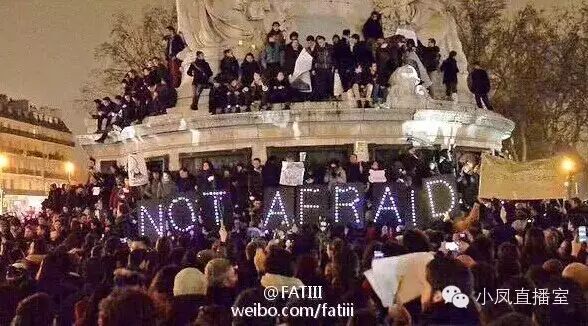 巴黎市民到廣場打出“不要害怕”標語,抗議ISIS。