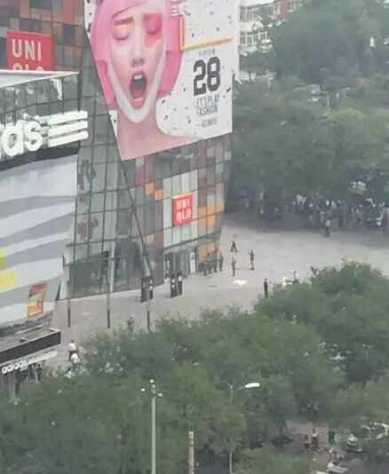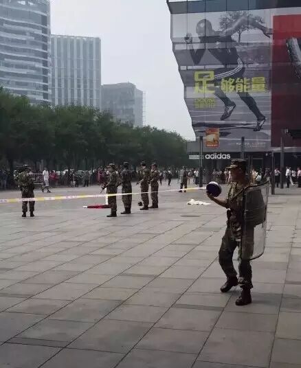 剛剛,在三裏屯優衣庫門口一男的拿1米長砍刀追人砍,一名女子被砍當場身亡,太古裏已戒嚴,歹徒已被警察製服!