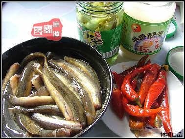 泥鰍(清水養了兩天去頭腹,水時幾滴油)。泡椒,野山椒,醪糟,薑蒜。