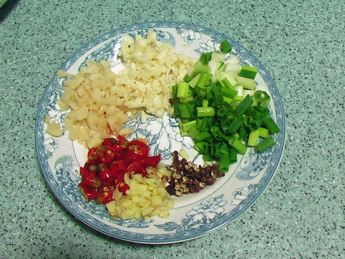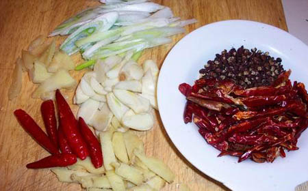 配料:薑,蒜,泡辣椒,花椒,蔥,白糖,醋,醬油等
