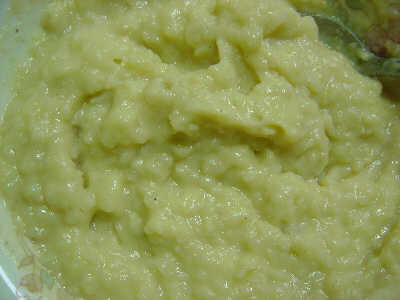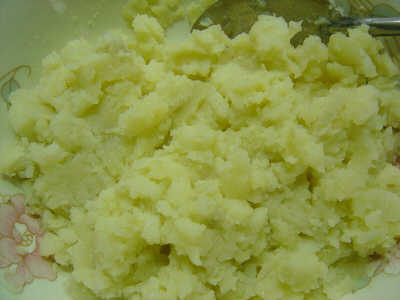 3.將蒸好的土豆去皮,弄碎