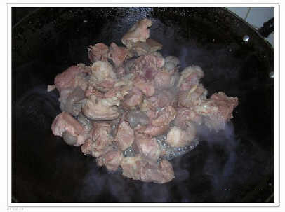1、首先把鍋燒熱,把羊肉倒進去炒幹,去掉水份。