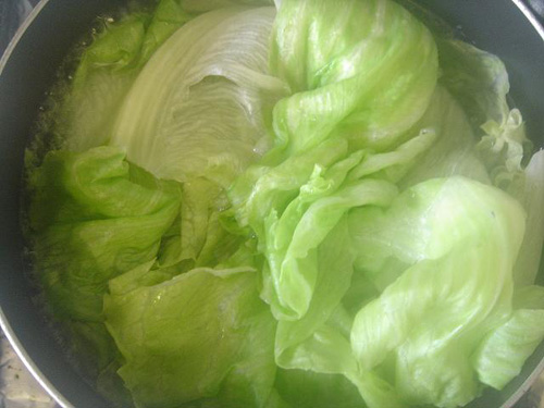 3、把生菜稍微燙一下,燙軟