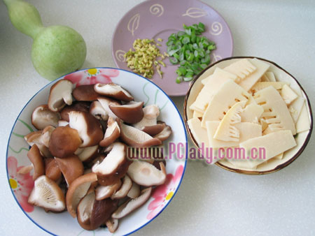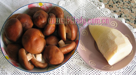 原料:冬菇50克(幹),冬筍150克。