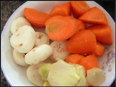 配料用了馬蹄、紅蘿卜、薑片。
