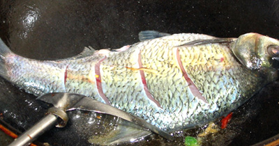3.在魚的兩側刈上花刀——這樣可以容易入味