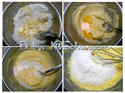 1、 黃油,糖粉一起攪拌,直至混合;