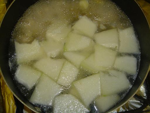 4、丸子在鍋裏的樣子就忘記拍了。中火煮10分鍾,下切好的冬瓜片。