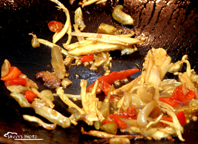3、下泥鰍煸炒片刻