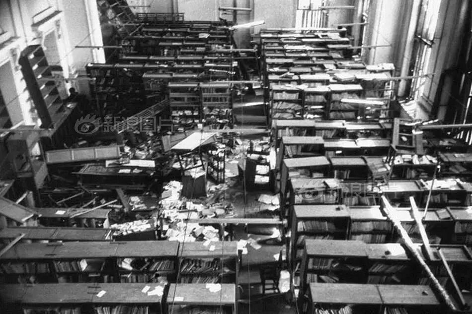 1967年6月28日,哈爾濱建築工程學院圖書館在武鬥中一片狼藉。攝影|李振盛
