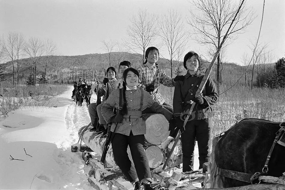1976年2月16日,黑龍江省亞布力林業局虎峰山林場,女知青伐木歸來。文革期間,來自全國各地的知識青年在邊疆插隊落戶幹革命。攝影|李振盛