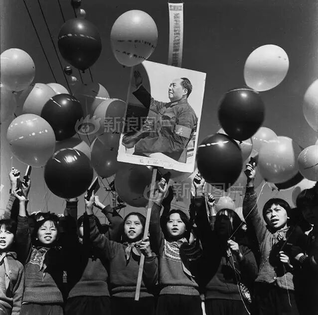 1968年10月1日,哈爾濱市少年兒童高舉毛澤東像參加國慶節集會。攝影|李振盛
