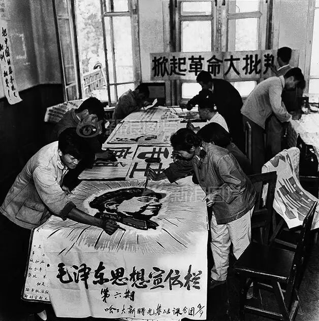 1967年9月4日,哈爾濱建築工程學院紅衛兵在辦毛澤東思想宣傳欄。攝影|李振盛